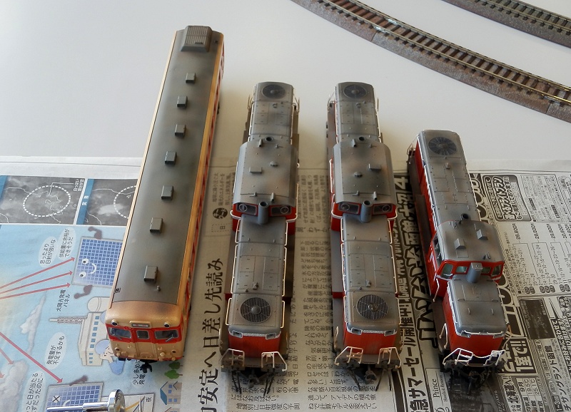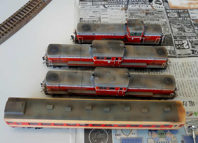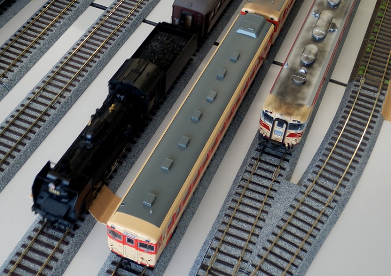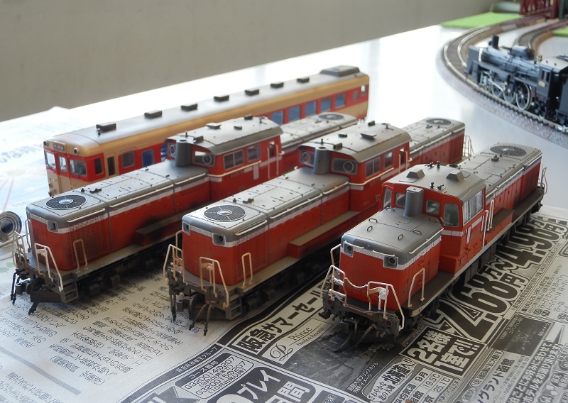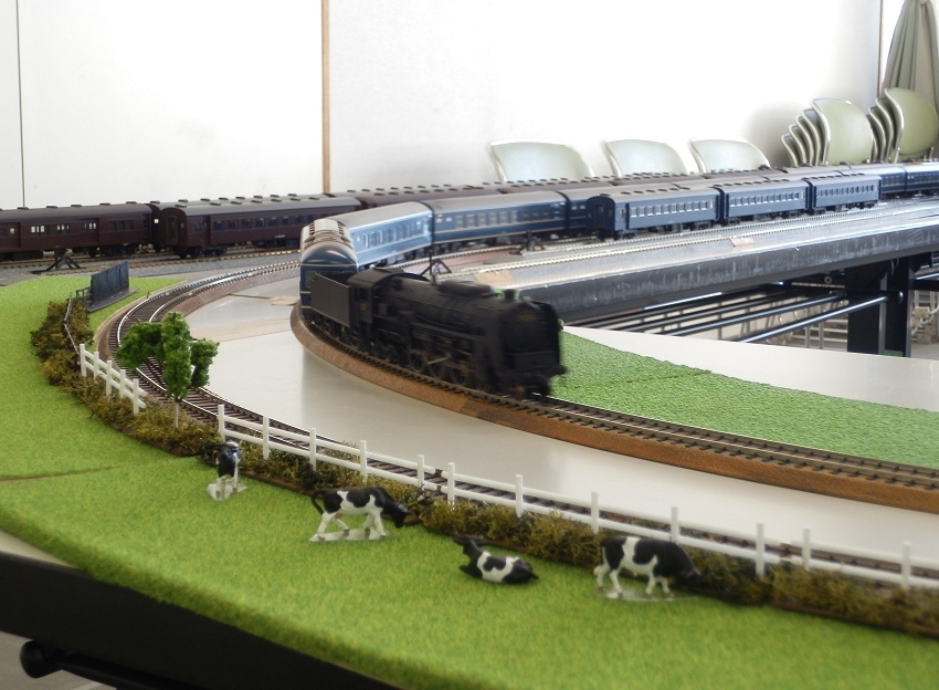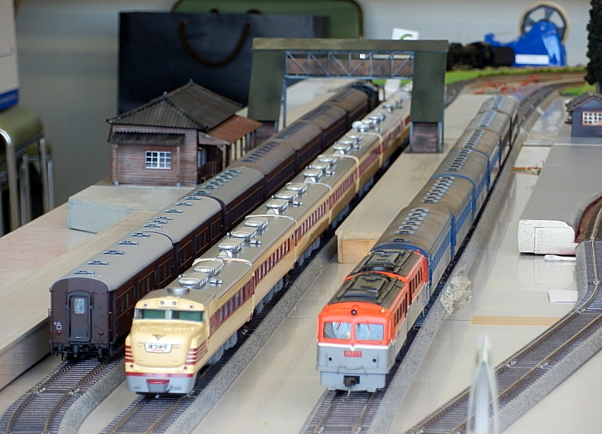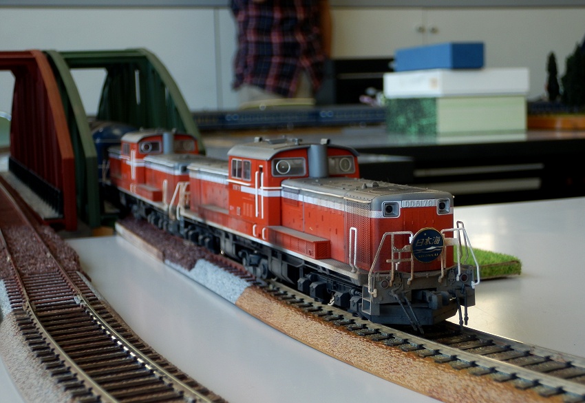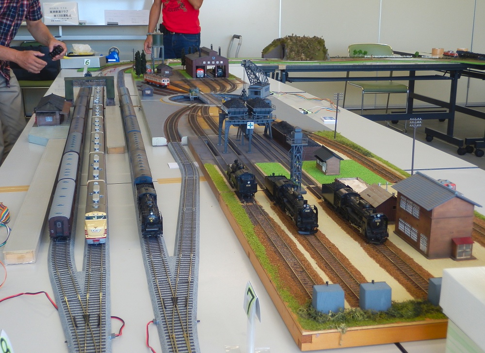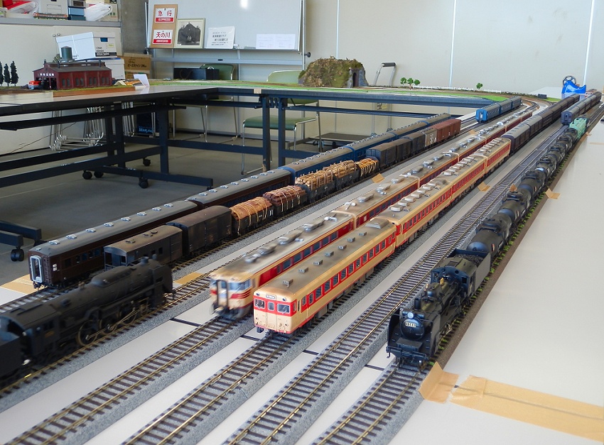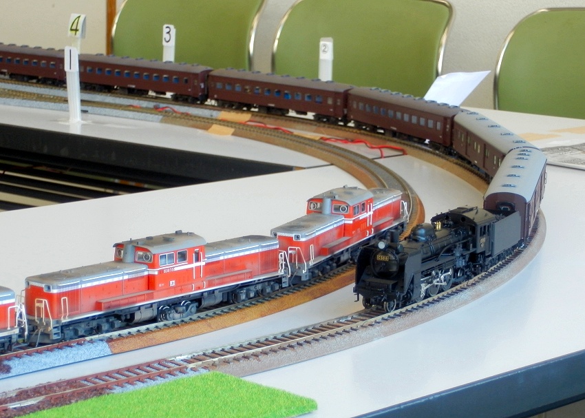 2008年の夏に始めた運転会も今回で13回目(丸4年)になりました。 運転会前日に集合、「いゃ、どーも、2日間ヨロシクゥ~」 満面の笑みを浮かべた50代? ビジネススマイルではございません。 この2日間はセーシュン時代のハートに戻ります! 搬入、机の配置、機関区やレールの設置など手分けして作業が進みます。 カトーのポイント組み立てもようやく上手くなりました? 失礼!・・。 20時頃には車両を並べ試運転をしてまた感動・・「おぉ、いいねぇ・・」 そして当日はサウンドを響かせガンガン走らせます! 楽しー! DD50(あすか模型)が入線しました。 インサイドギヤー音が懐かしぃ~ 前回の運転会は「荷レ編成」。 今回は東北の優等列車「特急日本海」を再現しました! あぁ・・あの日を思い出すなぁ・・・思い出の渚じゃなくて思い出のデーデー51。