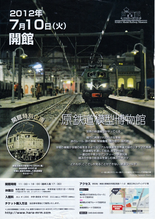 TTC K氏より速報! 京急「梅ちゃん先生」デンシャの写真が送信されてきました。 昔、ロクちゃん、今ウメちゃん 知性がありますね 10日、横浜にオープンした天賞堂みなとみらい店です。 横浜駅構内にあったユニークなトイレ看板! おもろい! 朝イチで飲んでしまった・・よーです・・ウィッ・・ ・・・・・・・・・・・・・・・・・・・・・・・・・・・・・・・・・・・・・・・・・・・・・・・・・・・・・・・・・・・・・・・・・・・ 一日遅れの今日、原鉄道模型博物館へGO! 横浜三井ビルディング 並んでいます 館内撮影NGとのことで パンフです やはり見どころは1番ゲージのビッグなレイアウトでした。 ん~・・スタッフ3名で進行していましたが、もう少しナレーターの レッスンをしたほうがイイカモ。 たしかに1番ゲージは迫力がありましたが、旭山動物園での見せ方を 研究したほうがイイカモ。 1Fの天賞堂に寄ってみました。 ハシクラ店長さんのカン高い声でいらっしゃいませ・・ いい感じデス。 こじんまわりしていますが, 大方16番、アッパーな品揃えですね。 やっぱし蒸機はいいなぁ・・ 国鉄旧型電機、シビレます。 ハマの天賞堂、がんばってください!