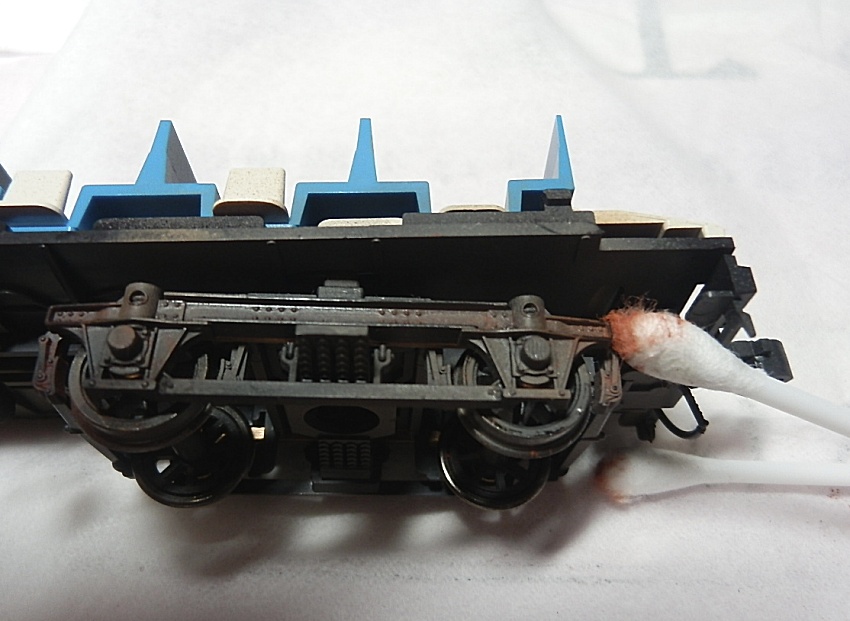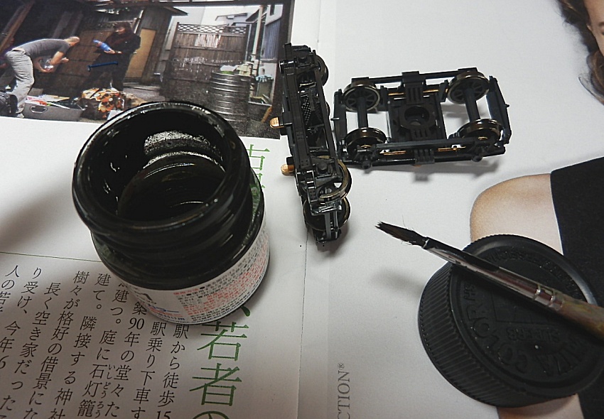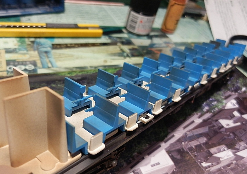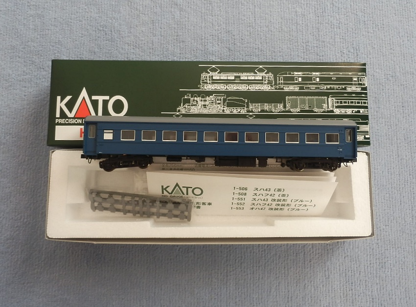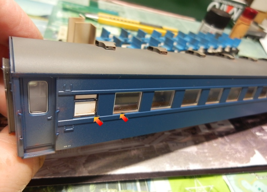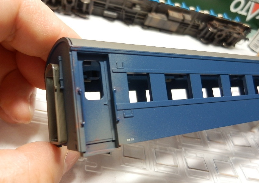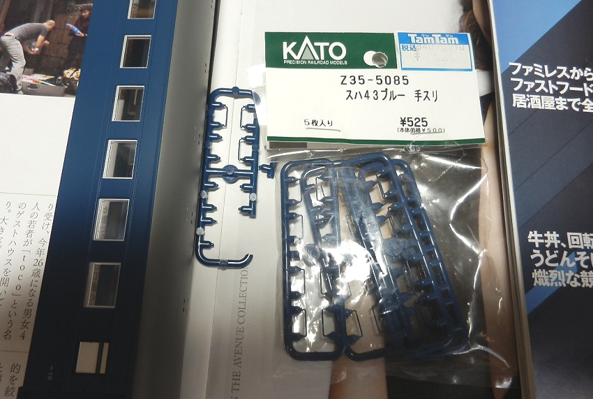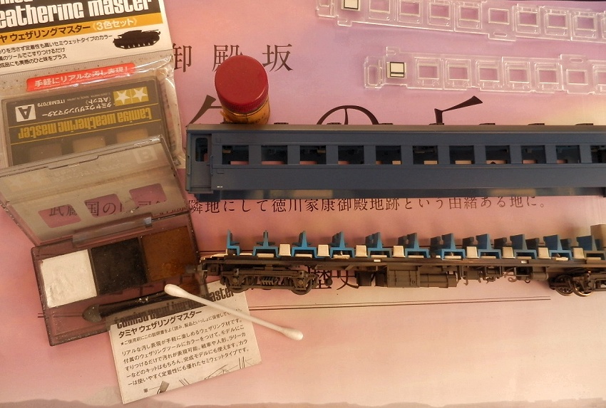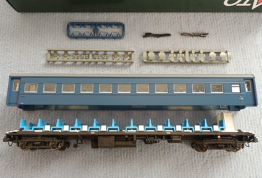 15歳での東北二人旅の始まりは上野発の夜行列車でした。 当時を思うと、寝台車利用はおダイジンしか乗れない高根の花。 当然ボクラは、ニスの匂いとたばこの臭いがするスハ43系の、 背もたれが90度の席で好摩までがんばったのでした。 長い客車列車は、停車するときはいいのですが、 発車のときの、ガッチャ~ンと連結器の音、ガックンと前後に揺れ、 絶対に熟睡できません。 降りたときは、なんだか体が揺れているような・・・ そんな思い出に浸りながら、軽工作してみました。 再発売された、KATOのオハ47です。 資料を見ると、S,46年春頃の八甲田の編成は 荷物車+スハフ42+スロ62+スハ43+「オハ47」・・・のようです。 アルミサッシの窓、モダンです。 台車、ピカピカです。 ベンチレーターと手すりをつけるだけなので、深夜で目がボーとしてもすぐに 出来そうです。 手すりは、半分だけ切り取り押し込みます。 ・・が パチ~ンと2本、空中に旅経っていきました。 前回の反省というか学習により、予備の手すり、買っておいて良かったぁ 台車は半艶のエナメル塗装しておきます。 |