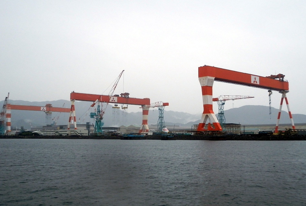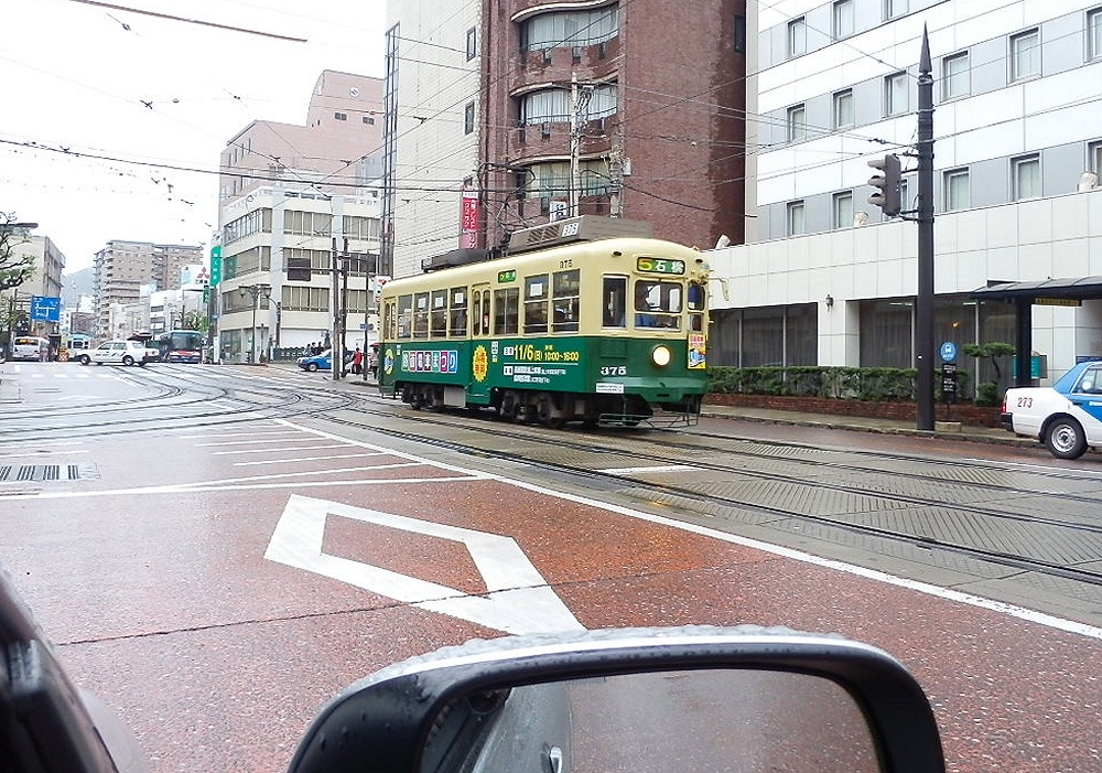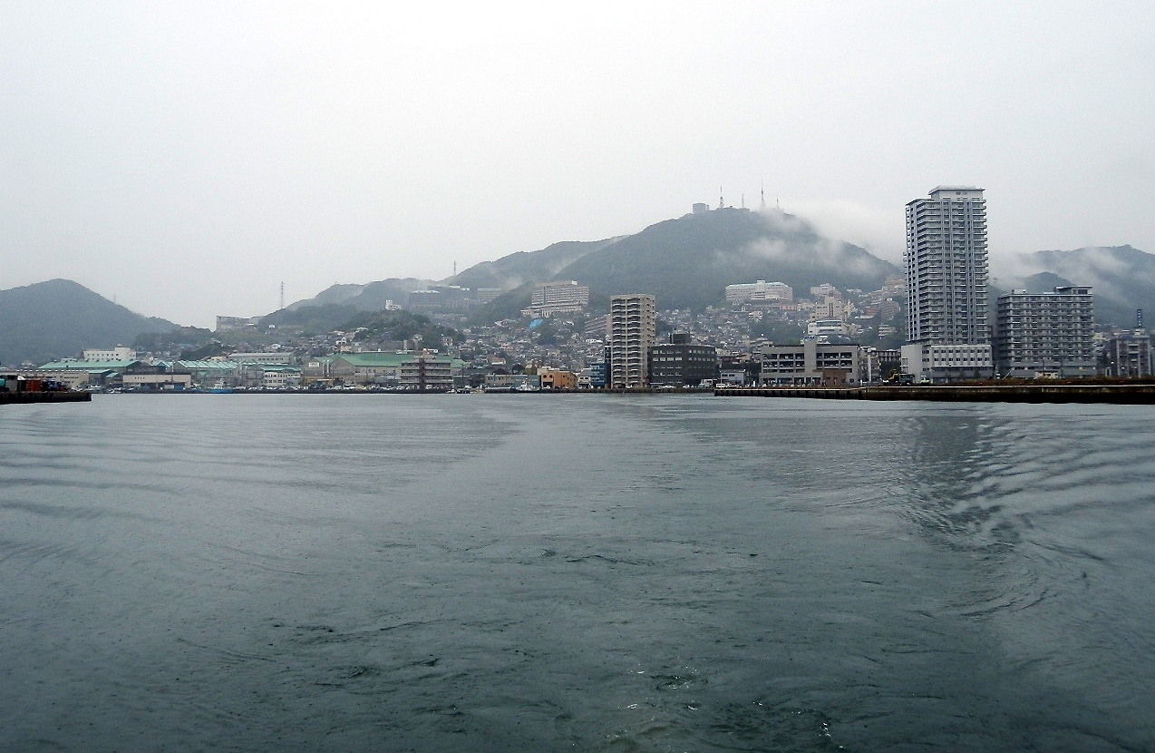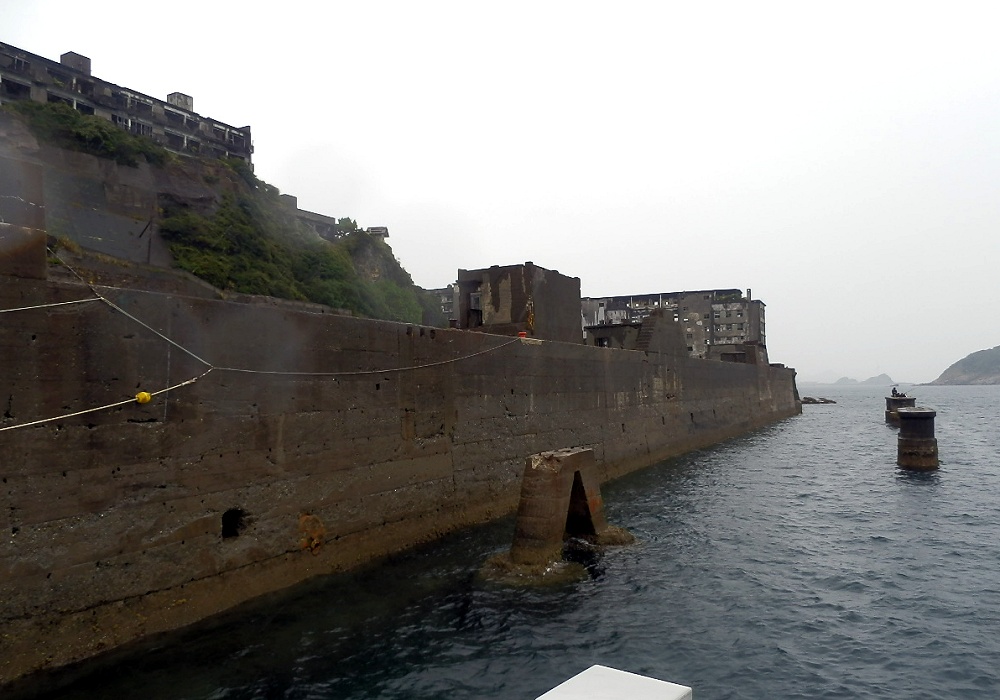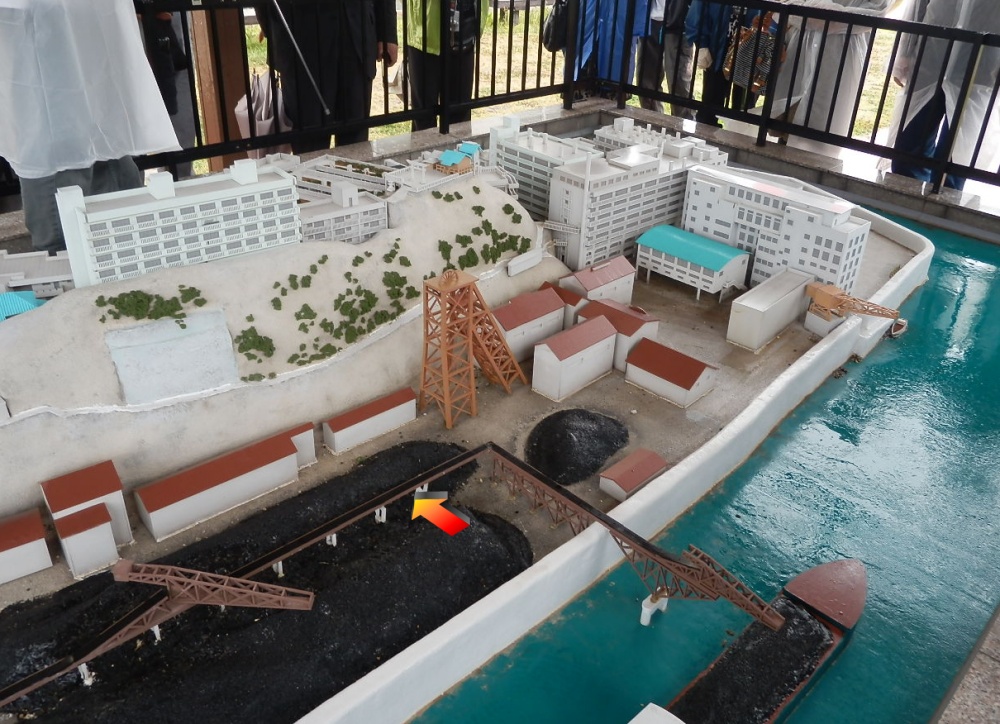を観てきました。 この島は、2年半前に見学通路が整備され、上陸できるようになったそうです。 上陸出来る確率は8月は強風の日が多く、50%程度のこと。 この日はあいにくの大雨でしたが、弱風なので無事上陸出来ました。 まずは地学の勉強です。 長崎港をあとに・・出発 長崎といえば、三菱です。 三菱といえば、岩崎弥太郎さんですね。 イージス艦が観えてきました。 建造中のイージス艦 高速艇で約40分、ようやく現れてきました。 外観が軍艦「土佐」に似ていることから軍艦島と呼ばれるようになったそうです。 高い堀で島を囲っています。 精炭された石炭は、このベルトコンベアーに乗って貯炭場に備えられるそうです。 今はその支柱がしっかり残っています。 模型で観ると・・ 1916年、大正5年に建てられた日本最古の7階建て鉄筋コンクリートの 高層アパートだそうです。 中央が吹き抜けになり中庭があり、地下にはお風呂もあったそうです。 日本の建築技術の粋を集めたのでしょうか。 炭鉱の中核建物。 情けないことに白ペンキのいたずら書きが見えます。 とても感動したツアーでした。 長崎に戻ったあとは、路面電車の撮影です。 都内を走るより神経を使いました。 2~3分ごとに走ってきます。 レトロ車体でファンになりました。