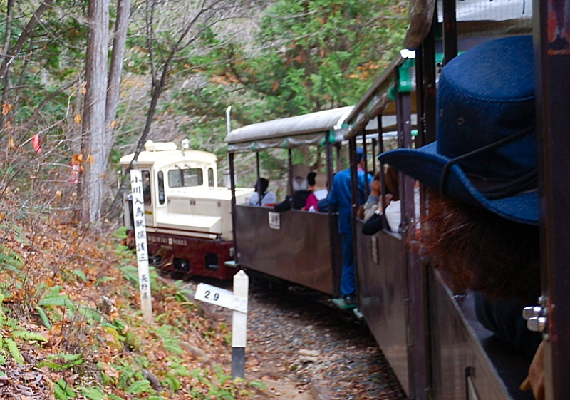 TTC大人の遠足に行ってきました。 行先は、赤松森林鉄道。 使用車両は、ブラックハイブリット車です。 0620、定刻通り、出発進行! いい車輌です。 スゥっと走ります。 道中、トークで盛り上がります! 前日は早く寝られるようにおビールをたっぷり飲んだそうです。 給炭・・です。 素晴らしい紅葉。 車道が狭くなり、ドライブテクニックの見せ所です。 四駆には負けません。 おぉ~ 森林鉄道の廃線あとが、はっきり残っています! 到着しました。 早っ・・ 資料館です。 早速、乗車券購入! ひのきの香り漂うキップです。 き、来ました! 大人はスグに記念写真を撮ります。 テツはポイントが気になります。 うしろを観ると・・ 出発進行! 支線ですね。 終点。 機関車の方向転換です。 出発まで少し時間があるので、散策に行きます。 つづく・・・ PR