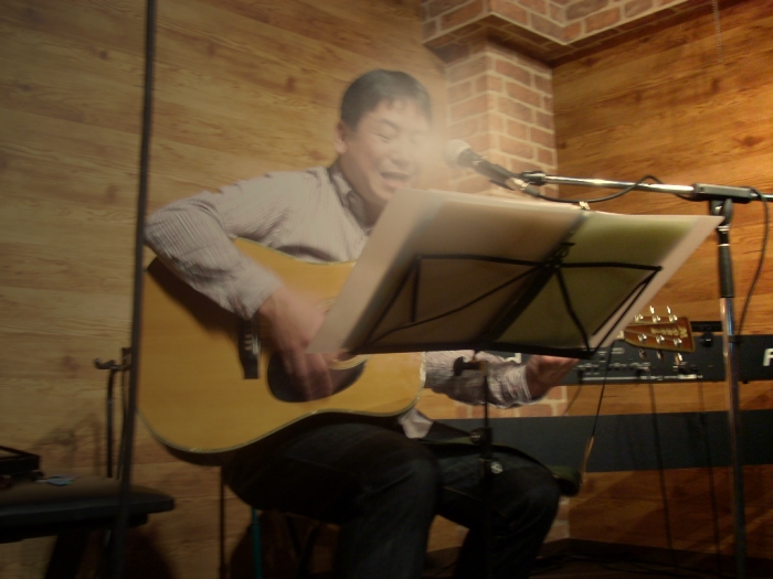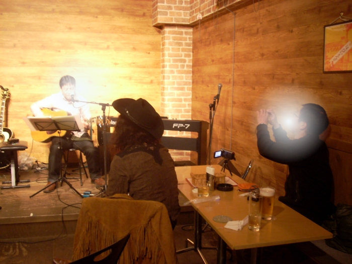 久しぶりに大井町線に乗車です。 大井町から大森まで京浜東北線。 大森駅ホームの屋根組みはまだ昔のまんまの木なんですね。 まだ16時。 大手居酒屋チェーンは開店前ですので 地元の「のんべい」が好きそうな赤提灯に入りました。 まずは、「とりあえずナマ・・」から始まり、いかの一夜干とキャベツのつまみを。 皆さんハイペースで次も「ナマビア」 その次も・・ナマはやっぱしうまいなあ~といことでまたまたナマ。 皆さん短時間に軽く4~5杯。 すんごいオヤジだぁ。 ボクは定番の焼きうどんを発注すると、 皆さんは、んじゃ最後にもう一杯飲んでいきましょ・・ っということでTTCに毎度参加してくださるN氏のライブ会場にGO! Impact というフォークバンドでCDも発売しております。 駅から歩いてすぐにライブハウスがありました。 まだ開店5年目だそうです。 まずはソロで熱唱! うまいです。 いい声してます! 続いてダブルで ・・ ウィスキーではありません。 いつもはもう一方いらっしゃるらしい。 お風邪かな? TTCの皆さん、相変わらずアルコール漬けですね。 まだ飲んでます。 最後は定例の記念写真ですね! 恥ずかしいのでノンフラッシュです。 |