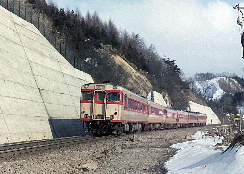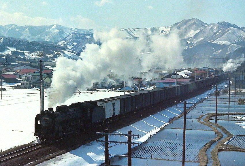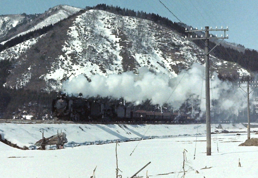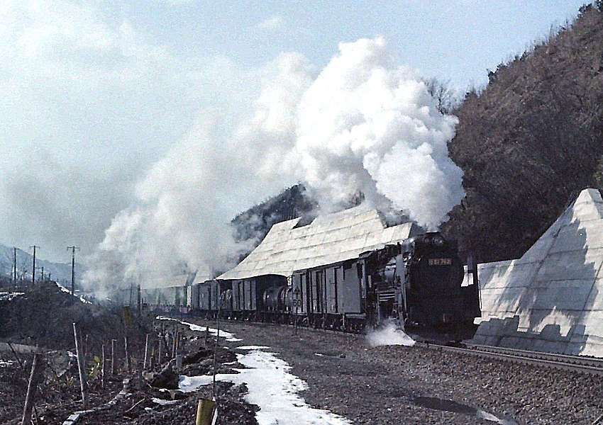 3月の山間の天候は変わりやすく、雲の切れ間から御天等様が現れると、 モノクロからカラーフィルムに入れ替えします。 重連の列車ダイヤはちゃんと構図を意識して構えます。 なにより、後部補機を撮るときは、なんとか全体が写真に納まるよう あっちに行ったりこっちに行ったり、ウロウロ歩きまわるんですね。 キャメラは標準レンズ程度しかないので、お立ち台選びが最重要なんです。 下り列車が駆け抜けていきます。 DCは構図づくりの予行練習です。 本命がやってきました! 綺麗に収まりました! 船底が美しい! 今度は高台から・・ 逆光ですが・・ イイんです・・補機の力強さが魅力でした! ........................................................................................................................................ ※ 2月15日に、すくらむ21館長様より返信封書が届きました。 1日のブログに追記しました。