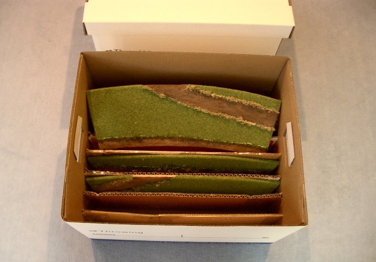 サイズはコンパクトで、規定の収納箱に入るようにしました。 R867の円周に16個必要ですが、まずは先行試作品です。 一番気配りすることは、 ■ 車での輸送時の振動に耐えられること。 ■ 少々子供たちに触わられても、シーナリーパウダー等がこぼれ落ちないこと。 っと、これから長~く使うので、丈夫であるということですね。 それと、あとから気が向いた時や、運転会中に追加作業が出来るように のびしろがあるレベルにしておいた方がいいんじゃないでしょうか・・ 基盤だけでも作っておけば、後から作り変えても良いしね! 厚さ5.5ミリベニヤです。 実際はほとんどカッターで切ってしまいました。 紙粘土で、道を作りテクスチャーペイントで塗装しました。 のんびり、ガタゴト・・ 8枚縦に収納し、上に2枚置いて全部で10パーツ入るようにしました。 上2パーツは小屋などのストラクチャー付きにしても充分納まります。 PR