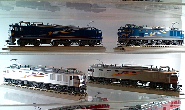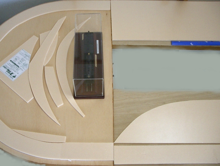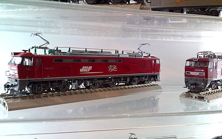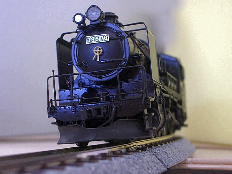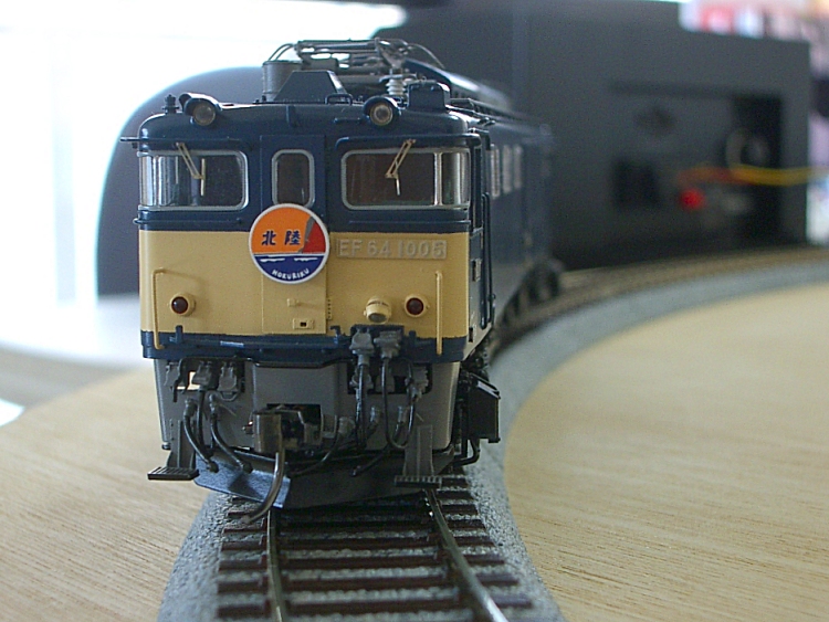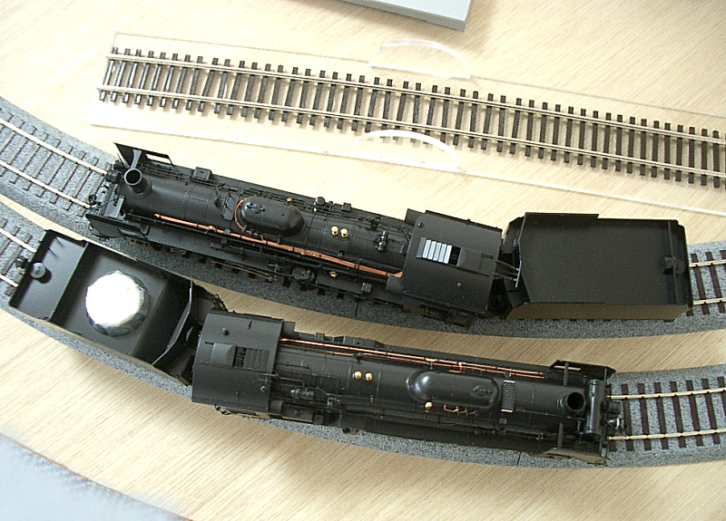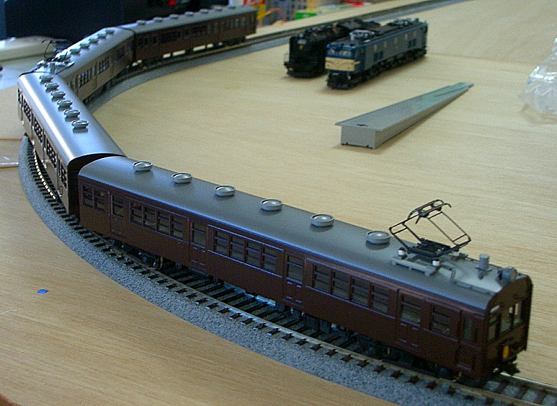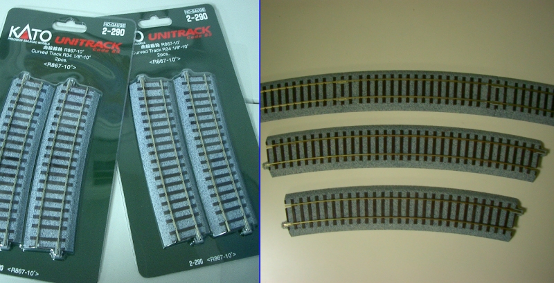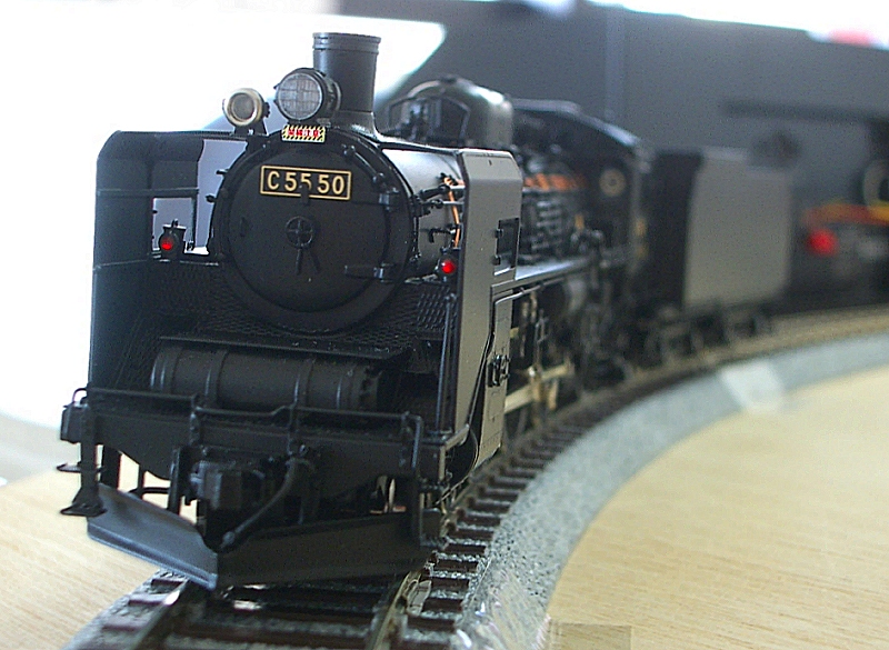 フレキシブルレール1本を用意しました。 (昔、9ミリベニヤに迷わずフレキを使用したことを思い出します。 真鋳フレキを使い、相棒と足尾線「神戸駅」風のレイアウトを作ったり、 洋銀フレキでR900を多用した、12畳スペースの組み立て式 複線レイアウトを作ったりしました。 カーブで勾配があったり、ダブルクロスポイントを導入したりと、当時は 複雑に作りこむことが楽しいんですね。 作ることそれ自体は楽しかったのですが、走らせてみるとポイントの接触不良、 バラストが剥がれて脱線と思うように走行しなかったことを思い出します。 まあウデが無かったということですが。 それと当時たしかバラストは、模型屋に無く建材屋みたいなところで砂を買って 使ったような記憶もあります。 昔はレイアウト製作8割、走行2割の比率。 今は年取ったのでその反対の比率です。) TTCではR790、6番ポイントを使用しています。 相当走り込んでおりますが、大変調子がいいんです。 ですから今回もザ・カトーです。 しかも一か八かでR550なんです。 そしたらC55もD51も全く問題なく走行出来たのでございます。 9600は楽勝です! ただ、C62あたりは?でしょうか。 少しカントをつけてみました! EF64も静かに走行! カンタムはR500くらいでも行けそうですね! 当然電車は余裕です。 ただこれ以上だと・・ |
