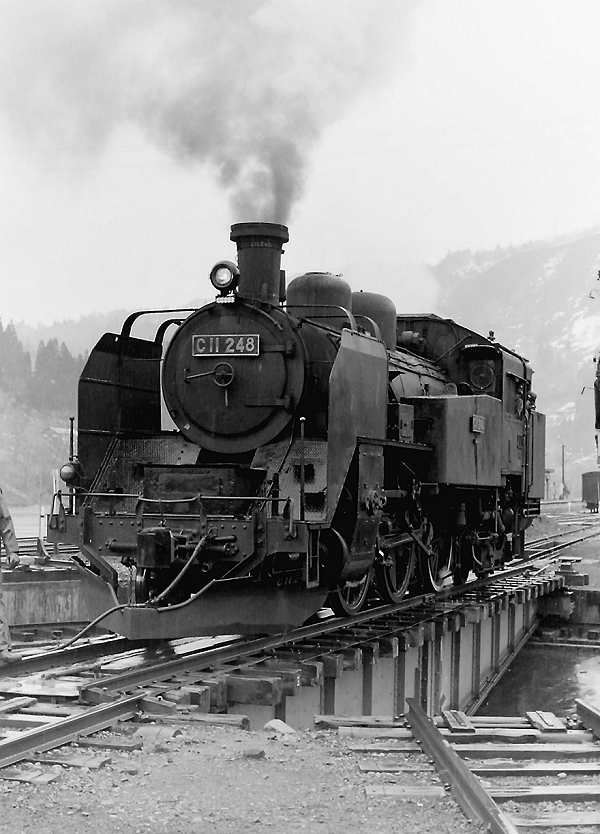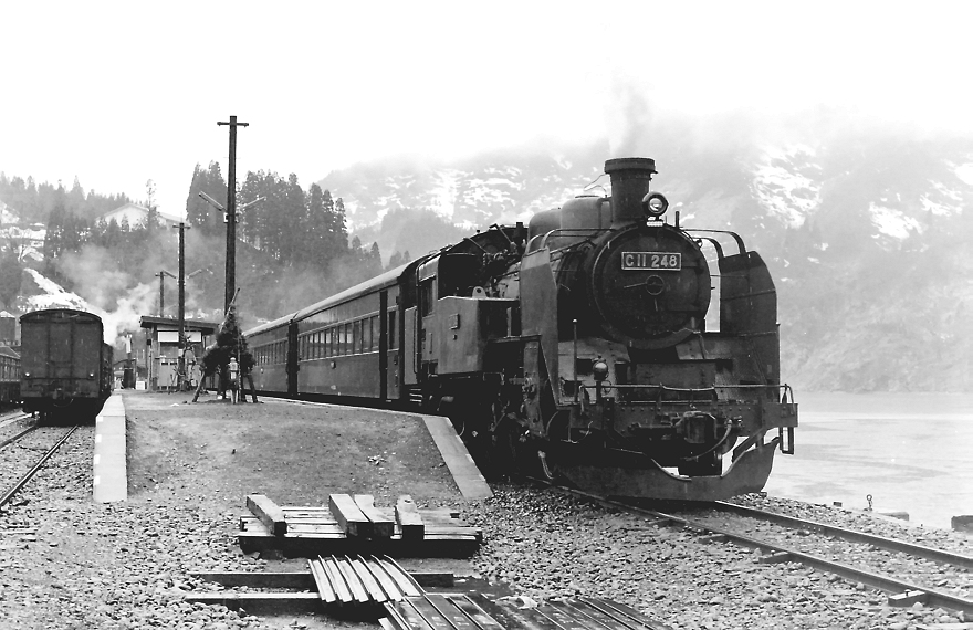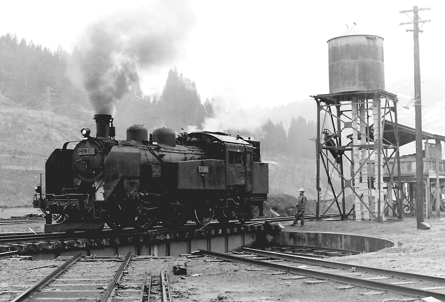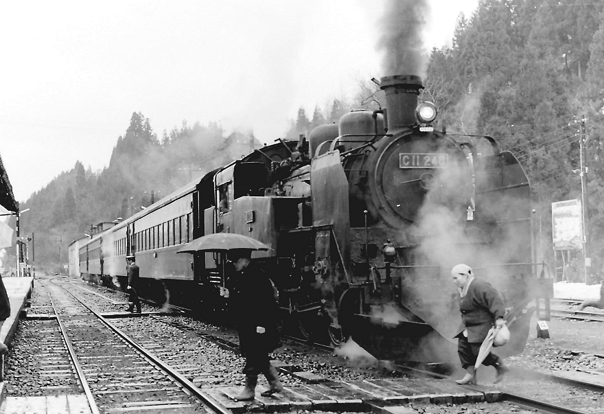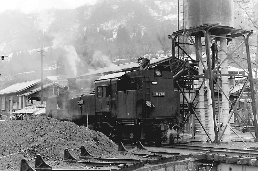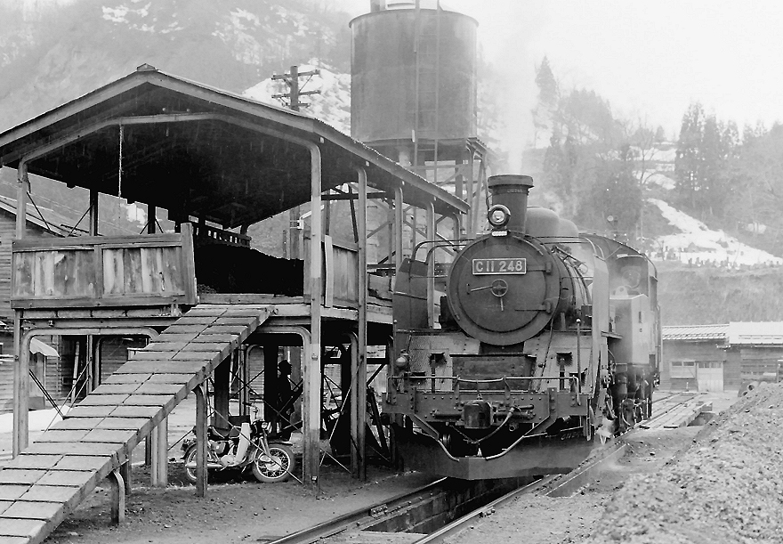 会津宮下駅でしばし停車し、給水するC11です。( F )