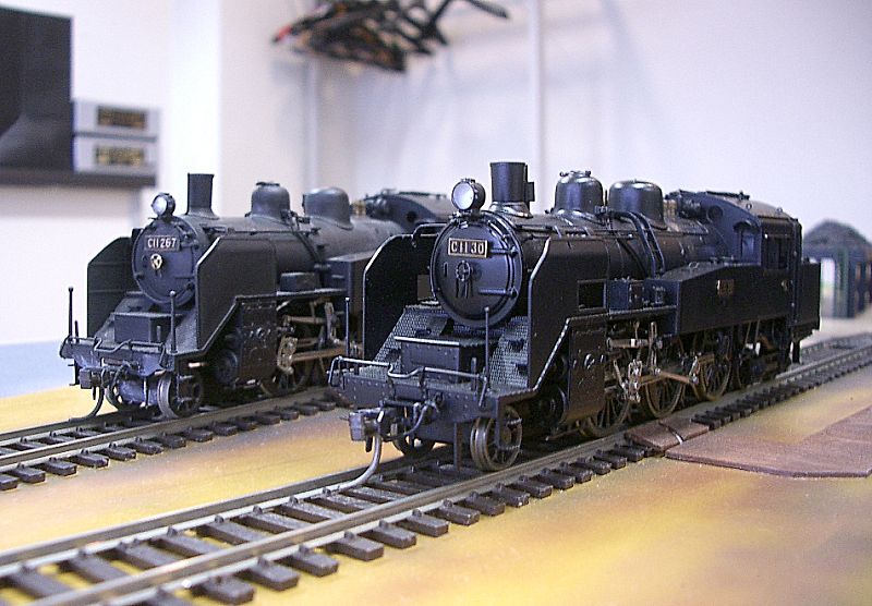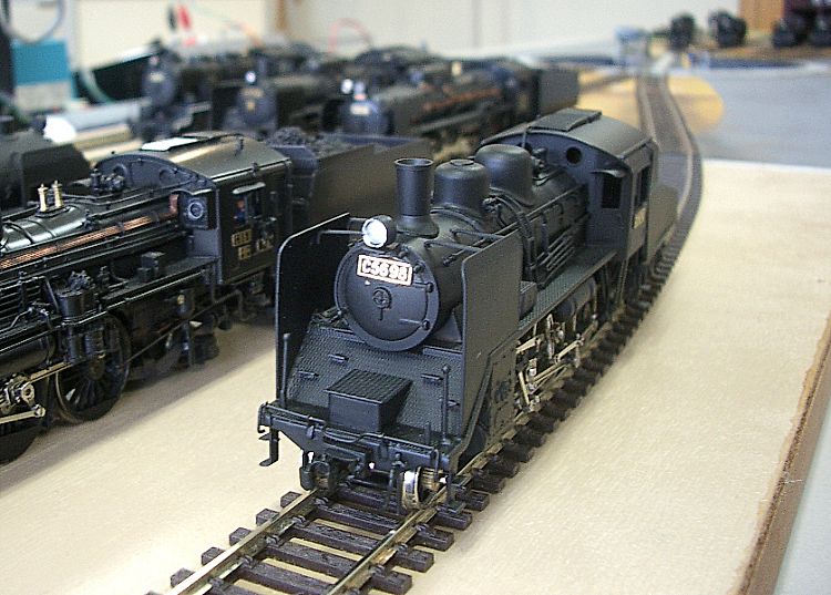 蒸機だけで、機関区だけの運転会を、再び行いました。 転車台に蒸機を乗せ、ぐるっと回し、機関庫に入庫させたり、 本線でゆる~く走らせるだけの運転会です。 KTMと天賞堂のC11。 KTMのC56。 ボクら、少年時代のカツミ模型は、トヨタのような総合メーカーのような存在。 ちなみにエンドウは、ニッサン、 模型社やつぼみ堂はいすゞのような 存在だったかも・・ (ショーウインドウで見るだけの天賞堂はベンツだったのです) ・・とビールを飲みながらの結論でした。 カワイモデルもお世話になりました。 ん~ 蒸機は、常に点検しないとね・・ 右側は本物の乗務員帽子。 空中から見るとサッパリしているなあ~ 機関庫の反対側は、未整備地区? と、いうよりも頓挫しているので、レールを追加するべきか、ストラクチャー を作るべきか、皆で議論。 で、石炭を上から落とすタイプの「給炭台」と、コンクリートタイプの「給水塔」を 建築することに決定! 皆様期待してます。 運転会終了後、懇親会・・・ 、 美味しいお酒で、乾杯! つまみが、40年前の「SL思ひで話&スーパージェッターやソラン」のトーク ばかりなので、セピア調 になってしまいました。