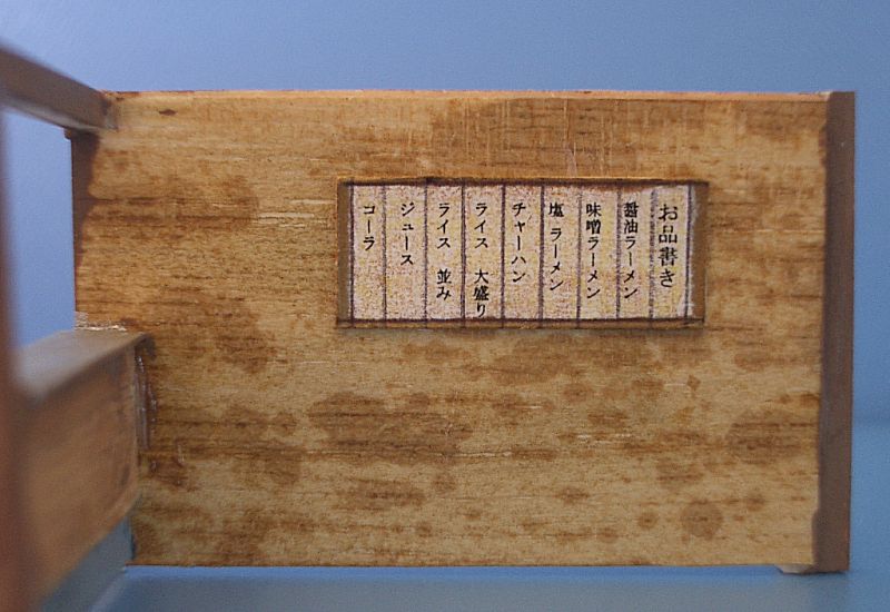 TTCメンバー(K氏)より「ヨコハマ鉄道模型フェスタ2010」で展示されていたC58 の写真が送信されてきましたので、アップします。 いい顔してるね、C58君! 結構シャープに仕上がっているようです。 あとは、手すり等、パイピングは、「まっつぐ」に取り付けて頂きたいところ。 ご存知のようにC58は、客車でも貨車でも似合う、均整のとれた中型万能機関車。 関東の標準タイプ、東北、北海道の耐寒タイプとも現役バリバリの雄姿を 見た世代としては、発売が待ち遠しいですね! このボンネットバスは売れるでしょうネ。 プラだから買いやすい売価でしょうし・・ 蒸機や気動車中心のTTCとしては、必須アイテムです。 いずれバス車庫も建設しなければと思います。 いつかです・・ PR 仮組みを一度はずし、 外壁板の縦幅の実測値が280ミリ~290ミリでしたので、 3.5ミリ間隔で、ウッドを貼り付けました。 さらに、縦の細板を表現する為に、0.5ミリ幅のプラ板を接着してみました。 しみだらけの壁に「お品書き」を取り付けてみました。 あれっ!メニューはこれだけ。 |