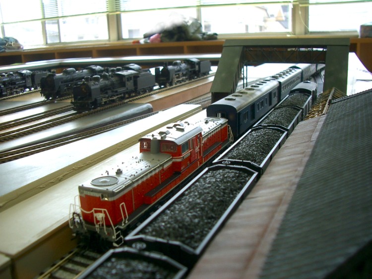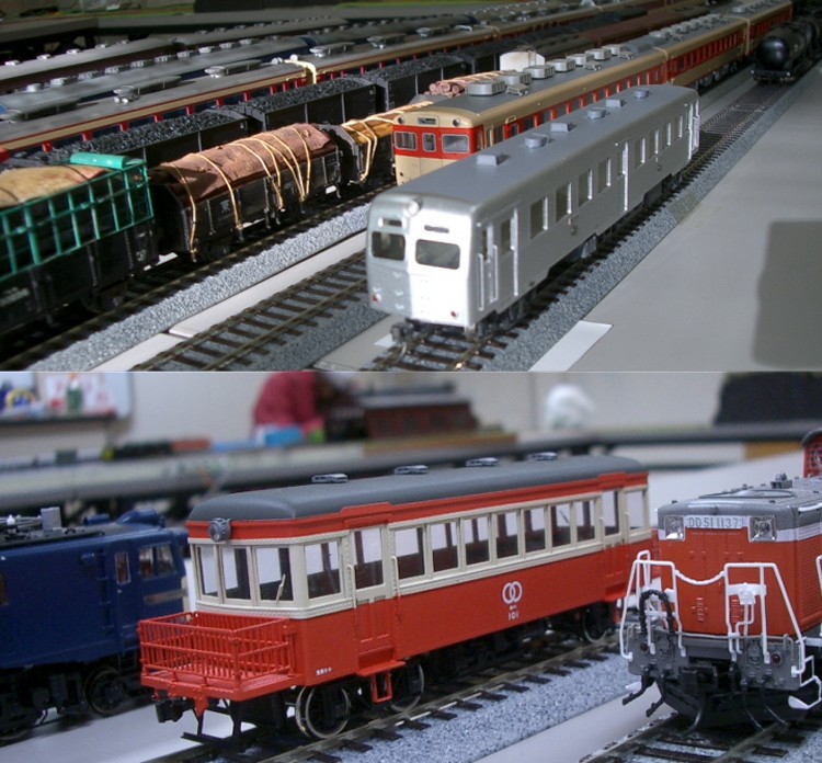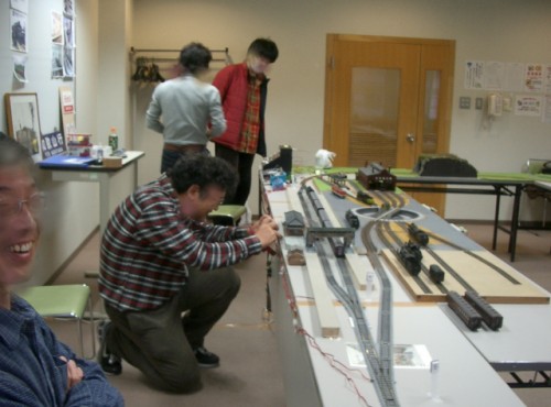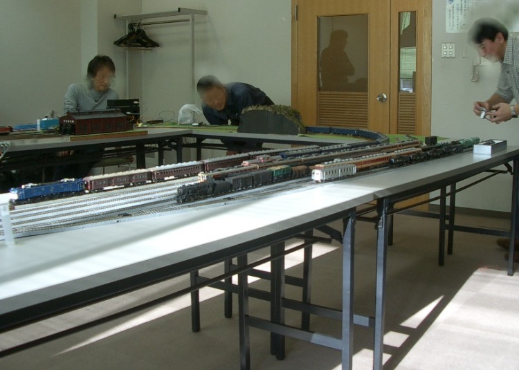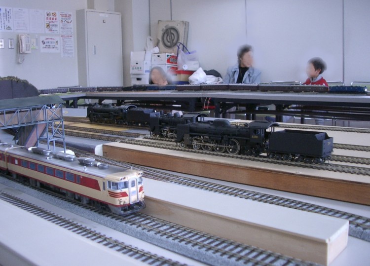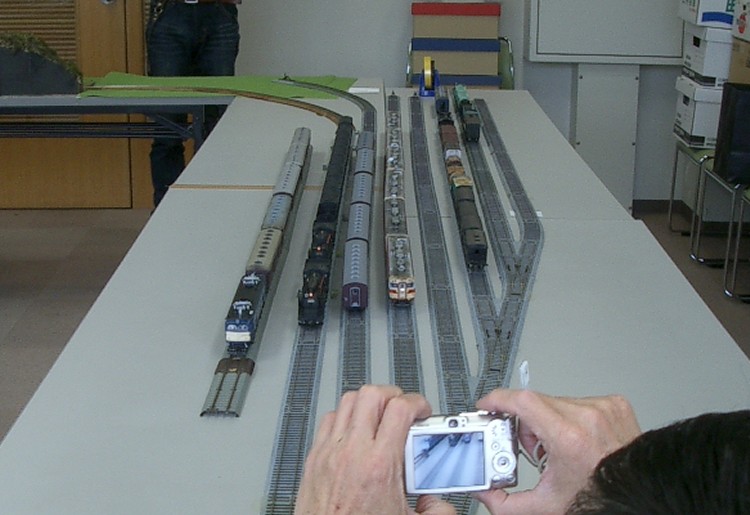 1年半前に始めたTTC運転会、早いもので第5回目となりました。 前日より組み立てたので、朝一から、すこぶる元気に出発進行! 以前は、組み上がった頃には、お昼頃になり、運転時には若干お疲れモード。 夕方には無口になってしまうのですが、今回は夕方まで楽しくがんばれました。 50代はグロンサン飲んで適度な休憩が必要ですね。 だけど、50代は食べるのだけは早いなあ~ まずは、機関区。 あ、DF50だ! 二つ目も! お子様もSL音に感動? 続いて駅周辺です。 跨線橋も建築されました。 駅前のお店も建ちました。 続いてヤード周り そして今回から名所がひとつ生まれました。 K氏自作のトンネルです。 相変わらず、すぐにカシャ・・ なんと 2分割式なんです。 総重量700g程度。 今回も遠いところから車輌持参のゲストが来られ 珍しいDC、DLを運転されました。 こういう車輌、大好きです! 駅本屋入り口からの撮影が人気? 爆笑でした。 ナローゲージャーNさま缶コウヒイありがとうございます。 駅構内には駅舎以外に多くの建物があります。 |