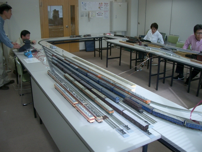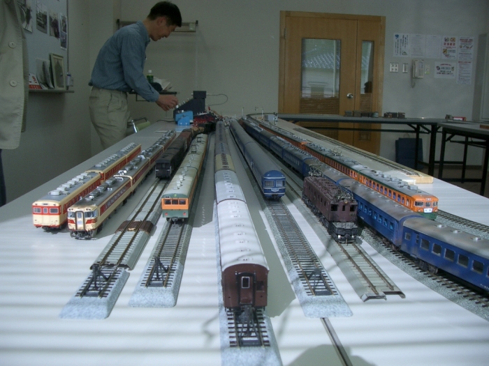 神土駅停車中のC12 46号機。(現在は神戸駅) 運転会でC12を出庫させたので、過去に撮影したC12の記録写真を 紐解いてみました。 ほとんどが足尾線、今のわたらせ渓谷鉄道の写真です。 残念ながら、カラー写真は、みごとに変色し薄ぼけた色になっています。 当時、足尾線沿線の峡谷風景があまりにも素晴らしく、奮発してカラーフィルム で撮ったことが、35年後逆にアダになったようです。 まあ、そのうち、PCでカラー修正してみたいと思います。 当時を思い起こすと、足尾線・会津線(只見)はF氏とお気軽に出かけた旅でした。 東京から比較的近いので、足尾線は朝1番、会津線へは上野駅を夜出発して いたと記憶しています。 でっかいカメラBOXと三脚担いで。 ところで、ある雑誌を読んでいたら、(わが国鉄時代・VAL1・こんな時代を生きてきた) 民主党の前原誠司代議士も、小学校からのSLファンだったようです。 親しみを感じる議員さんです。 PR こんな収納箱を作ったところ、大幅に時間短縮。 車輌の出し入れは、以外と時間がかかります。 今までは・・・ 展示ケースから→車輌ケースに入れ→ダンボール箱収納→車輌ケースを 取り出し→配置 今回から・・・ 展示ケースから→オリジナル収納ケース→配置 と、作業が大幅に短縮できました。 ダンボール箱は東急ハンズで購入。 車輌の仕切りは塩化ビニールで製作。 1シート8両入るようにつくり、3段重ねにしました。 合計24輌。 カプラーがあたる所のみ、プチプチを入れクッションにしているので、破損はしませんでした。 車輌をつかみ取る時に塩化ビニールは広がるので、気持ちよく取り出せます。 何よりも車輌をかたずけるのが楽で、これからも必須アイテムです。 昨日、第3回運転会開催。 NHK 熱中時間のサブタイトルのように、テーマはいつも 「忙中趣味あり・鉄分補給」である。 3回目でようやく、会場を借りての組み立て式レイアウトの、ノウハウらしき が出来たというところでしょうか。 機材の搬入、デスクの設置作業で30分。 デスクどうしの高さ調整に30分。(実はこれが結構時間がかかる) レイアウトの組み立て・電気配線に60分。(これは大幅に短縮できました) テスト走行しながら、レール微調整に30分といったところでしょうか。 1mmの誤差は実車では8cmとなるので、慎重にチェックしなければなりません。 今回からヤードが6本に増備され、キハ58や165系も加わり壮観です。 11時頃からはゲストさんも数名みえられました。 なかには、ライブスチームをやっていられるかたも来場されました。 HOもなかなかいいですネ・・・とありがたいお言葉。 毎年、JAM鉄道コンベンションに参加していらっしゃるそうなので 国際展示場でお会いできるのを楽しみにしています。 数十年ぶりに復活し、僕達の車輌は35年以上のものばかりですが、 修理しながら、思い切り走らせるのは爽快です。 少しずつ増車していこうとも思います。 昨今、音の出る車輌も増えてきているようですし。 次回は8月下旬、1周年記念運転会を行う予定です。(すくらむ21にて) もし、押入れにHO車輌が眠っているのなら、動かしてみませんか? TTC(高津鉄道クラブ)では、団塊世代前後のHOオヤジの参加、大歓迎です。 カトーのレール足りない・・・ まあいいや、カツミのレール使っちゃお~ お気軽な運転会です。 |