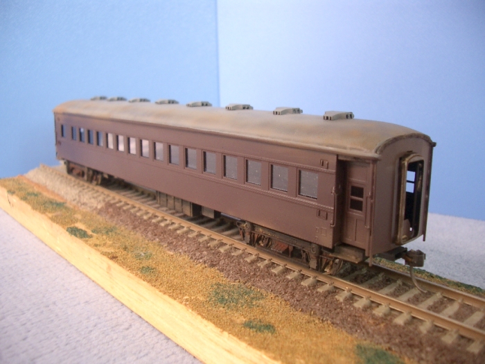 ボデー下面と屋根を泥色で少しウェザリングし、台車はベンガラを少し
