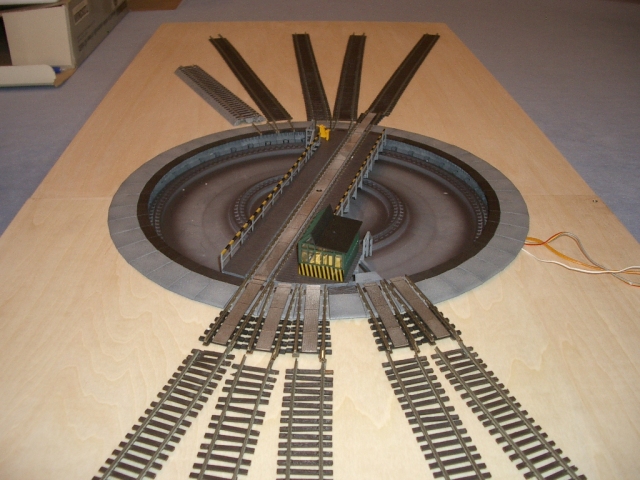 従って機関庫は扇形に出来ませんので、3車線の機関庫にします。