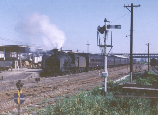 ハチロクの客車列車がゆっくりと入線してきます。